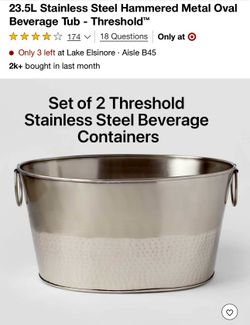 23.5L Stainless Steel Hammered Metal Oval Beverage Tub - Threshold$40Lake Elsinore, CA