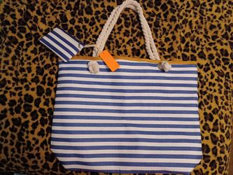 NWT - Extra Large Nautical Blue and White Canvas Tote with Matching Wristlet$40Union City, CA