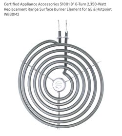 Certified Appliance Accessories 51001 8" 6-Turn 2,350-Watt Replacement Range Surface Burner Element for GE & Hotpoint WB30M2$10Clarksburg, CA