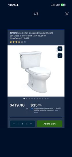 TOTO Drake Cotton Elongated Standard height Soft Close 2-piece Toilet 12-in Rough-In WaterSense 1.28 GPF$285Sacramento, CA