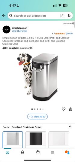 SimpleHuman Large Pet Food Storage Container for Dog Food, Cat Food, and Bird Feed, Brushed Stainless Steel $80Miami Beach, FL