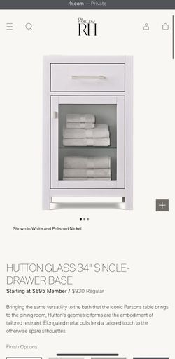 Restoration Hardware RH White Hutton 34” Single Drawer Base Shelf$350Miami Beach, FL