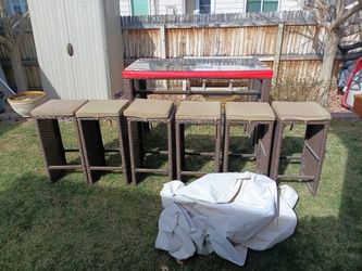 6 Outdoor Wicker Chairs Bar Stools W Cushions 14.75" X 14.75" X 28" Tall$180Aurora, CO
