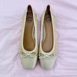 White Mountain Beige Crochet Bow Ballet Flats Slip-On Square Toe Women's 10M$15Fresno, CA