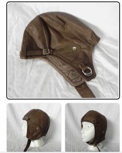 Vintage Leonhard 4005 Meerbusch LEATHER AVIATION HELMET Flight Cap Wool Lined$60Glmn Hot Spgs, CA