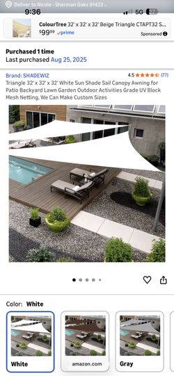 Triangle 32' x 32' x 32' White Sun Shade Sail Canopy$50Los Angeles, CA