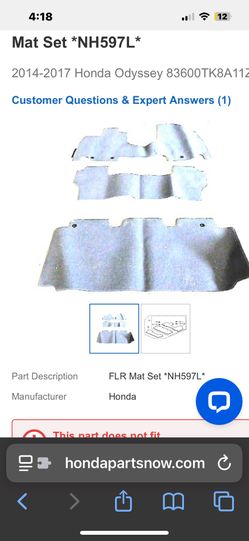 14’ To 17’ Honda Odyssey Gray Carpet Floor Mat Set$150Portland, OR