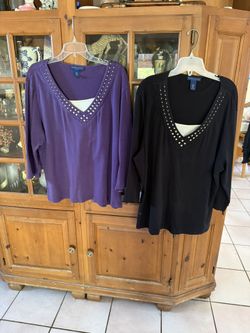 Two Karen Scott Women’s Tops Size 2X Black And Purple With Stud In Embellishment And Three-Quarter Inch Sleeve Women’s Plu2X$20Hollywood, FL