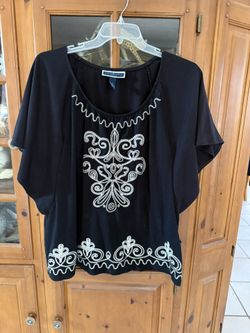 Karen Scott Women’s Sz 1X Casual Black Top white Embroidered Design With Dolman Sleeves$15Hollywood, FL