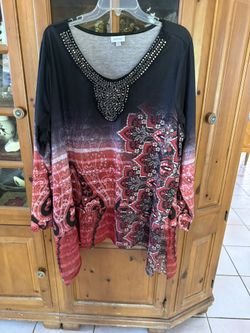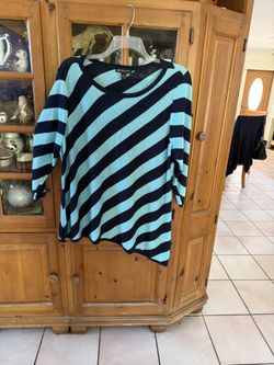 Two Women’s Size 2X Navy Blue And Turquoise With Metallic Threading. It Has Three-Quarter Inch Sleeves And A High Low Hem.$20Hollywood, FL