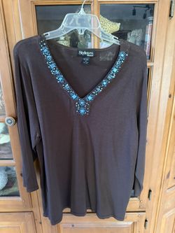 Gently Worn Style & co Women’s sz 2x Dark Brown sweater With Turquoise Beading Embellishment $15Hollywood, FL