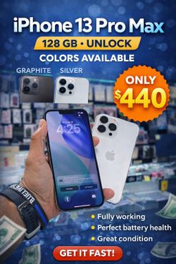 iPhone 13 Pro Max โ 128GB ๐ฅ ONLY $440 ๐ฅ$440Pembroke Pines, FL