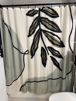 72 x 72 Sage Green Beige Abstract Nature Art Decorative Bathroom Shower Curtain with Black Hooks$15Berlin, NJ