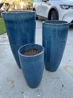 Blue Glazed Ceramic Planters-Pots $165 set of 3$165El Monte, CA