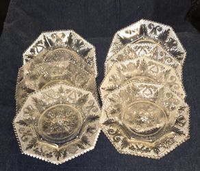 DUNCAN MILLER, ANTIQUE, Clear Glass Harp & Thistle Octagonal Dessert Plates $100Lakewood, WA