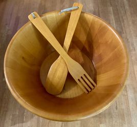 Solid Wood Salad Bowl With Stand And Utensils $55Seattle, WA