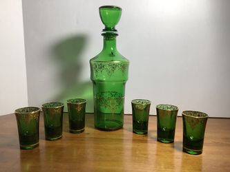 CIRCA 1960’S ITALIAN CRISTALLERIE ARTISTICHE D.F.P. EMERALD ART GLASS LIQUOR DECANTER AND 6 SHOT GLASSES$45Ocoee, FL