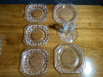 VINTAGE FOSTORIA “MANOR CLEAR” PATTERN ETCHED 4 TOED SERVING BOWL AND 6 SALAD / SIDE PLATES BLOWN GLASS$45Orlando, FL