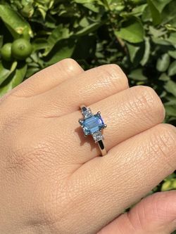 New 1.4 CTW. VVS2 Emerald Cut Fancy Intense Blue Lab Grown Diamond Three Stone 14K Gold Engagement Ring with two Princess Cut Square Accent Diamonds $5,850Irvine, CA