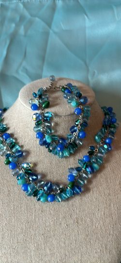 Joan Rivers stuning blue glass and semi precious stone necklace and bracelet $50San Diego, CA