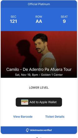 Camilo Concert$250Sacramento, CA