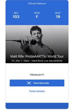 Matt Rife Tickes$300Sacramento, CA