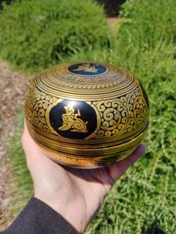 Vintage lacquer trinket box foo dog Asian black and gold$40Mather, CA