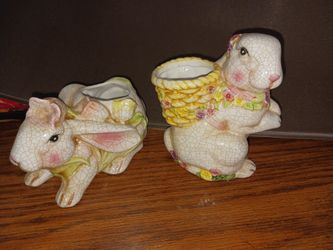 Rabbit Planters: Ceramic Crackle Finish Adorable $30Natalia, TX