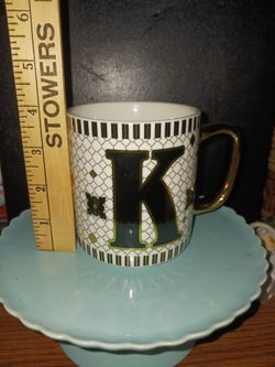 Monogram Mug: Creative Crate Tile K Mug Black, White And Gold Handle $18Natalia, TX