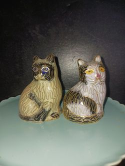 Vintage Cloissone Cats: 2- Intricate Wirework Filed With Enamel $70Natalia, TX
