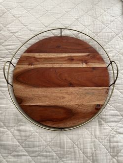 Round Placement Holder Magnolia Wood Tray with Metal Handles $20Oceanside, CA