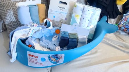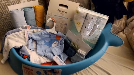 NEW BABY SKIP HOP TUB WITH BABY AVENO WELCOME BABY GIFT SET MUSLIM SWADDLES SOCKS OUTFITS HOODED BATH TOWLES 3 PIECE SET$60Fontana, CA