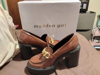 NEW GENUINE MADDEN GIRL BY STEVE MADDEN WOMENS SIZE 6 KASSIDY PATENT LUG SOLE HEELED BROWN LOAFERS$15Merced, CA