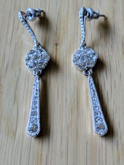 Vintage Rhinestone Drop Earrings In Silver Intricate Craftsmanship Classy Elegant 2".