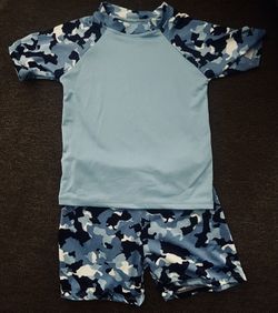 Boys European Style Blue Army Swim Shorts & Sun Shirt $7Newport Beach, CA