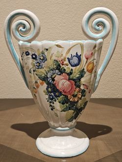 Vintage Italy Vanro Pottery Floral Design Vase With Double Handles M-334$15Heathrow, FL