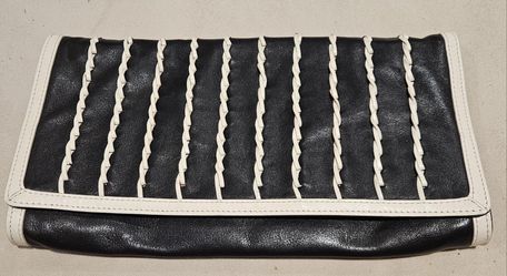 CHRISTOPHER KON Black Leather large clutch w/ cream stripes $30Heathrow, FL