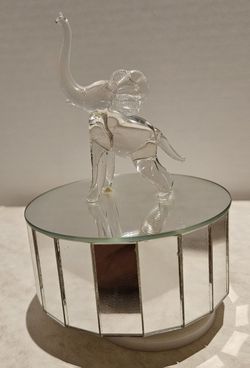 Vtg Elephant Hand Spun Blown Glass Art Figurine Mirrored Turning Music Box$15Heathrow, FL