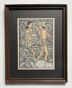 Vintage Bali Indonesia Original Watercolor Painting by W. J. Nanu Signed, Framed$350Los Angeles, CA
