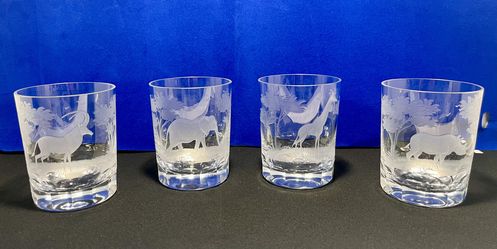 Set of 4 Queen Lace Crystal Germany African Animals 8 OZ Etched Glasses 3 3/4"H$380Los Angeles, CA