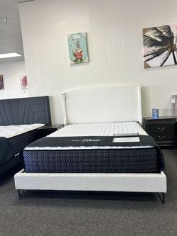 Queen White Boucle Platform Bed Frame $199Glendale, AZ