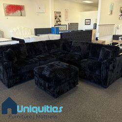 Sectional With Ottoman In Black Corduroy$599Glendale, AZ