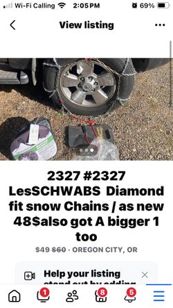 Schwabs Diamond Fit Snow Chains 2327, Or2317 Both New$49Oregon City, OR