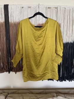Yellow/gold silk-like blouse with puffy 3/4 sleeves and elastic cuffs; perfect condition$8Fowler, CA