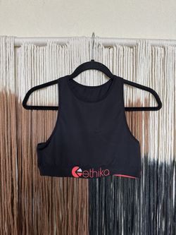 Black Ethika high neck performance style sports bra with neon pink accents$8Fowler, CA