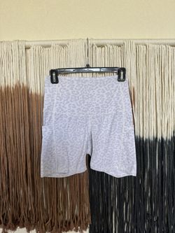 White and grey leopard print spandex bike shorts with pockets$5Fowler, CA
