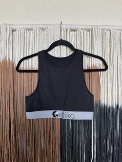 Black Ethika high neck mesh style sports bra with a grey elastic band; perfect condition$8Fowler, CA