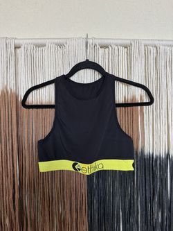 Black Ethika high neck performance style sports bra with neon yellow accents; excellent condition$5Fowler, CA