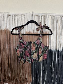 Floral corset top with adjustable ties/bow detail and zipper closure on the back; perfect condition$10Fowler, CA