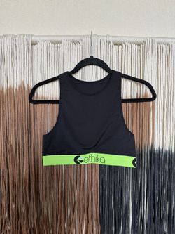 Black Ethika high neck performance style sports bra with neon green accents; perfect condition$8Fowler, CA